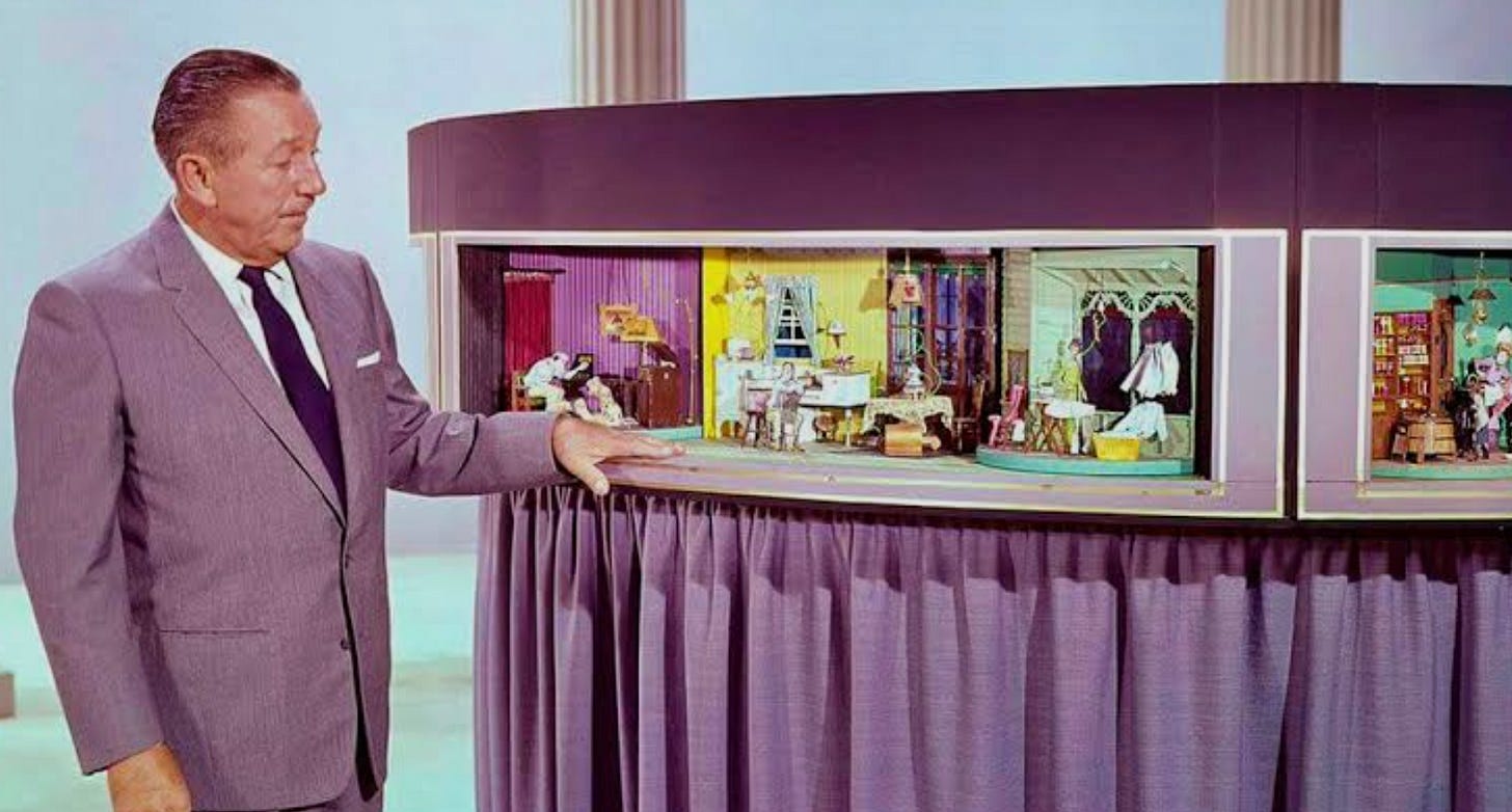 The imagineers went to work and that evening in front of GE (the sponsor was General Electric) Directors before the show Walt gave a disclaimer saying that the show was still in test mode and anything could happen…and crossed his fingers.